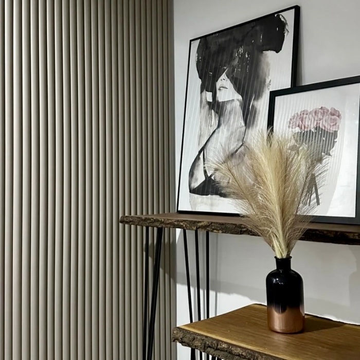 Akustické panely s dizajnovými lamelami – dokonalé spojenie moderného dizajnu a špičkovej akustiky. Dostupné sú v ôsmich farebných prevedeniach. Panely majú dĺžku 275 cm a šírku 14,5 cm, vďaka čomu ich ľahko namontujete od podlahy až po strop.