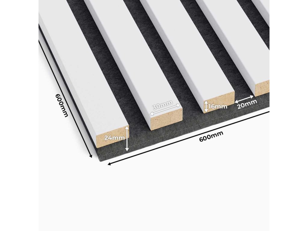 3D akustické panely v bielom odtieni sú možnosťou pre všetkých, ktorí chcú nadčasovú a zároveň originálnu dekoráciu steny alebo stropu. Akustické panely tohto typu sa na prvý pohľad veľmi ľahko zamenia so skutočným, masívnym drevom. Tieto vlastnosti ocení každý, kto miluje prírodné prvky v interiéroch, vďaka ktorým môžete priestor ľahko zútulniť a dodať mu jedinečný charakter. Akustické panely, ktoré ponúkame na filcovej podložke, majú rozmery 60 cm x 60 cm a je možné ich inštalovať vertikálne, horizontálne, ako aj vytvárať geometrické vzory. Okrem skvelého vzhľadu sú panely veľmi praktické, opticky zväčšujú a tiež účinne odhlučňujú miestnosť. Ako nainštalovať akustické 3D panely? Montáž akustických panelov zvládne doslova každý. Stačí použiť príslušné lepidlo / napríklad Mamut glue high tack / a riadiť sa pokynmi výrobcu. Ak máte akékoľvek otázky alebo pochybnosti, sme tu, aby sme vám pomohli. Rozmery Akustický 3D panel: Dĺžka 60 cm. Šírka 60 cm. Medzera medzi lamelami je 2 cm. Rozmer lamely je šírka 3 cm a hrúbka 1,6 cm. Hrúbka filcovej podložky je 8 mm.