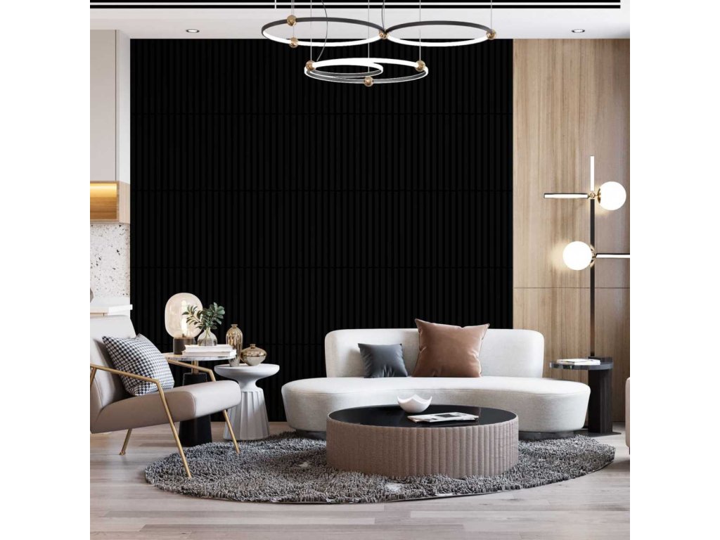 3D akustické panely v čiernom odtieni sú možnosťou pre všetkých, ktorí chcú nadčasovú a zároveň originálnu dekoráciu steny alebo stropu. Akustické panely tohto typu sa na prvý pohľad veľmi ľahko zamenia so skutočným, masívnym drevom. Tieto vlastnosti ocení každý, kto miluje prírodné prvky v interiéroch, vďaka ktorým môžete priestor ľahko zútulniť a dodať mu jedinečný charakter. Akustické panely, ktoré ponúkame na filcovej podložke, majú rozmery 60 cm x 60 cm a je možné ich inštalovať vertikálne, horizontálne, ako aj vytvárať geometrické vzory. Okrem skvelého vzhľadu sú panely veľmi praktické, opticky zväčšujú a tiež účinne odhlučňujú miestnosť. Ako nainštalovať akustické 3D panely? Montáž akustických panelov zvládne doslova každý. Stačí použiť príslušné lepidlo / napríklad Mamut glue high tack / a riadiť sa pokynmi výrobcu. Ak máte akékoľvek otázky alebo pochybnosti, sme tu, aby sme vám pomohli. Rozmery Akustický 3D panel: Dĺžka 60 cm. Šírka 60 cm. Medzera medzi lamelami je 2 cm. Rozmer lamely je šírka 3 cm a hrúbka 1,6 cm. Hrúbka filcovej podložky je 8 mm.
