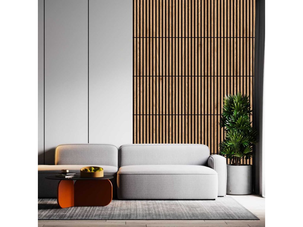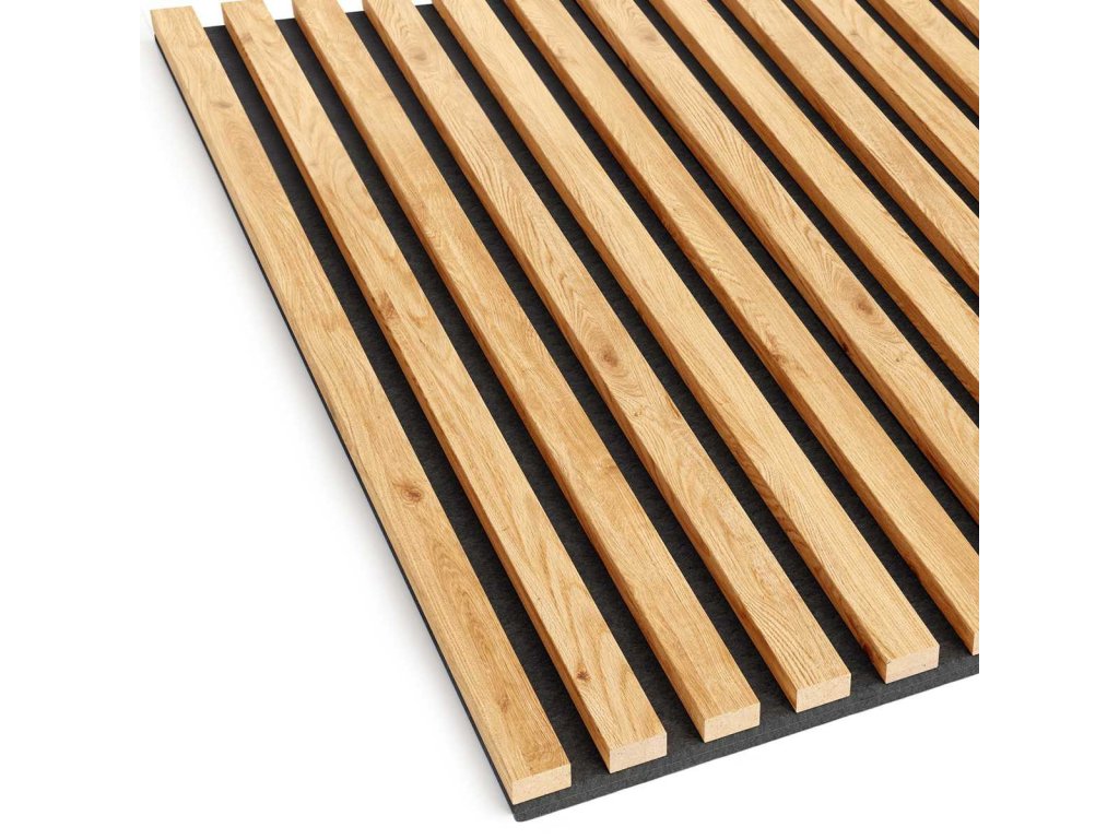 Akustické lamelové 3D panely, poskytujú skvelý vzhľad a účinne odhlučňujú miestnosť. Jednoduchá montáž lepením priamo na podklad.