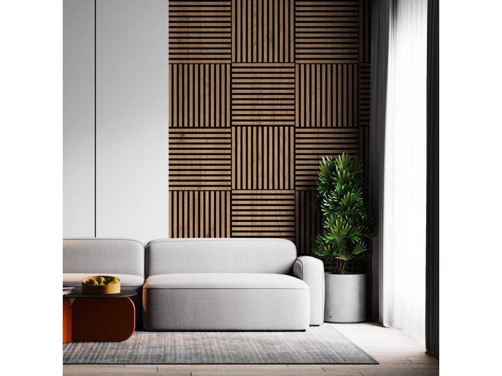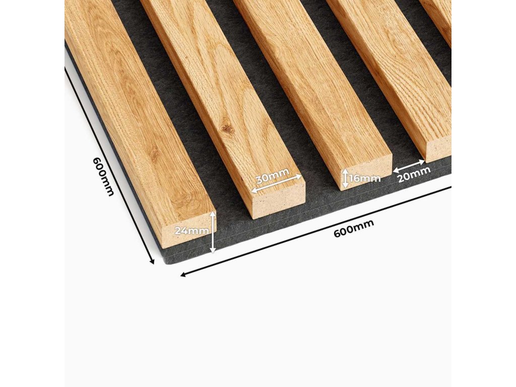 3D akustické panely vo farbe prírodného duba sú možnosťou pre všetkých, ktorí chcú nadčasovú a zároveň originálnu dekoráciu steny alebo stropu. Akustické panely tohto typu sa na prvý pohľad veľmi ľahko zamenia so skutočným, masívnym drevom. Tieto vlastnosti ocení každý, kto miluje prírodné prvky v interiéroch, vďaka ktorým môžete priestor ľahko zútulniť a dodať mu jedinečný charakter. Akustické panely, ktoré ponúkame na filcovej podložke, majú rozmery 60 cm x 60 cm a je možné ich inštalovať vertikálne, horizontálne, ako aj vytvárať geometrické vzory. Okrem skvelého vzhľadu sú panely veľmi praktické, opticky zväčšujú a tiež účinne odhlučňujú miestnosť. Ako nainštalovať akustické 3D panely? Montáž akustických panelov zvládne doslova každý. Stačí použiť príslušné lepidlo / napríklad Mamut glue high tack / a riadiť sa pokynmi výrobcu. Ak máte akékoľvek otázky alebo pochybnosti, sme tu, aby sme vám pomohli. Rozmery Akustický 3D panel: Dĺžka 60 cm. Šírka 60 cm. Medzera medzi lamelami je 2 cm. Rozmer lamely je šírka 3 cm a hrúbka 1,6 cm. Hrúbka filcovej podložky je 8 mm.