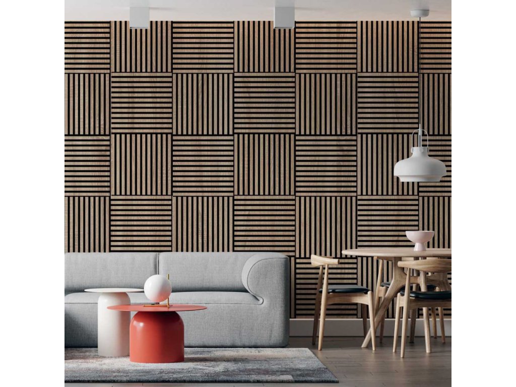 Akustické lamelové 3D panely, poskytujú skvelý vzhľad a účinne odhlučňujú miestnosť. Jednoduchá montáž lepením priamo na podklad.