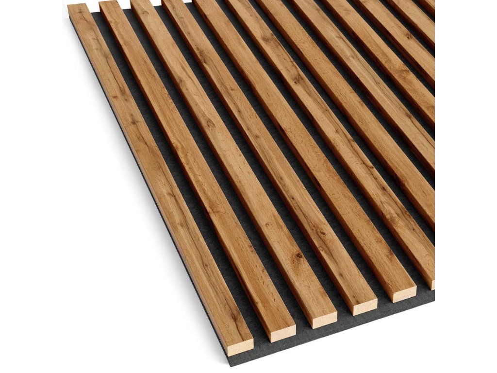 Akustické lamelové 3D panely, poskytujú skvelý vzhľad a účinne odhlučňujú miestnosť. Jednoduchá montáž lepením priamo na podklad.