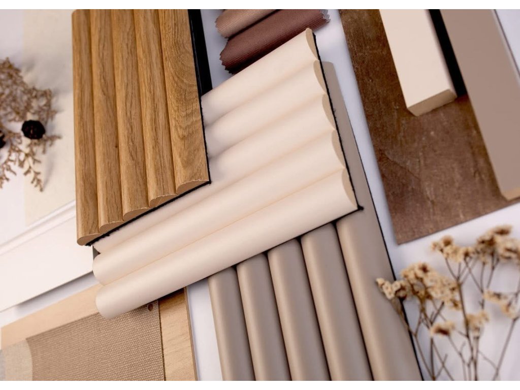Akustický dizajnový panel v béžovom prevedení s filcovým podkladom a zaoblenými lamelami prináša štýlový vzhľad a vynikajúce akustické vlastnosti pre každú miestnosť. Ideálne riešenie pre tých, ktorí hľadajú estetiku aj funkčnosť v interiéri.