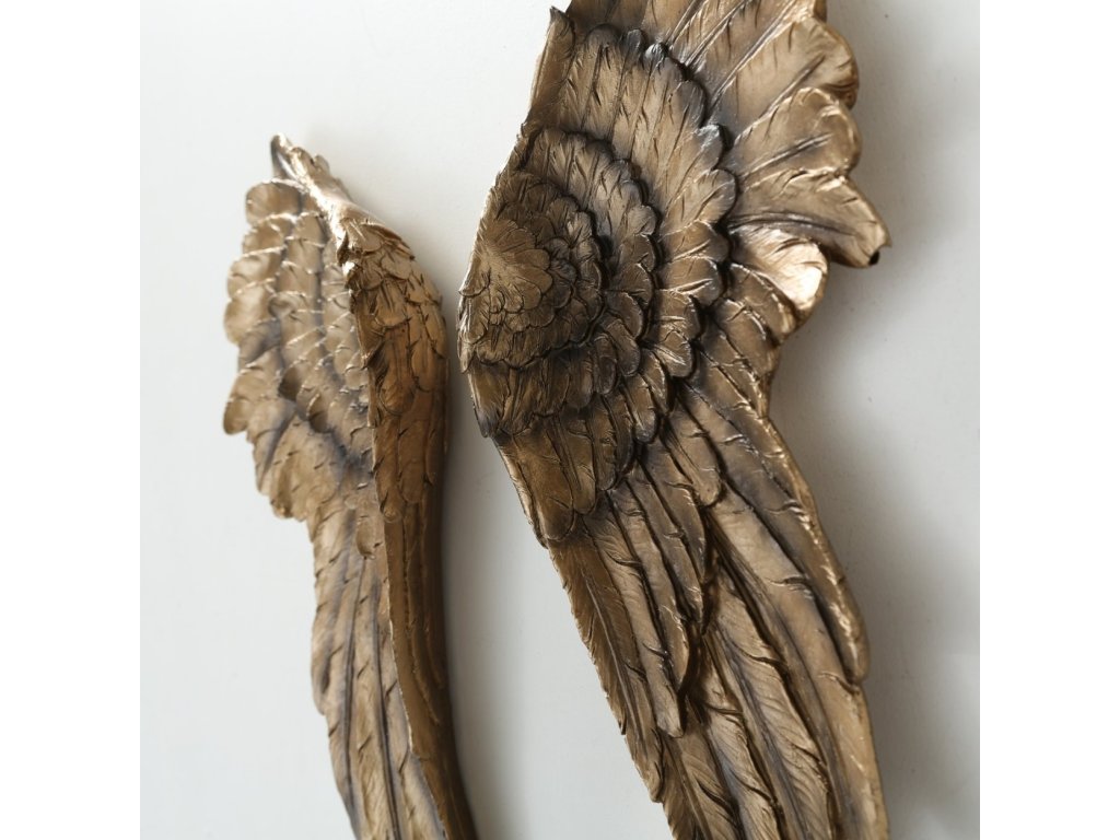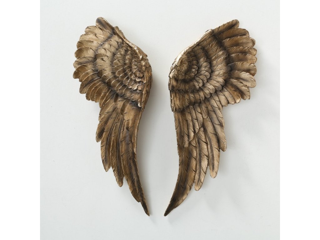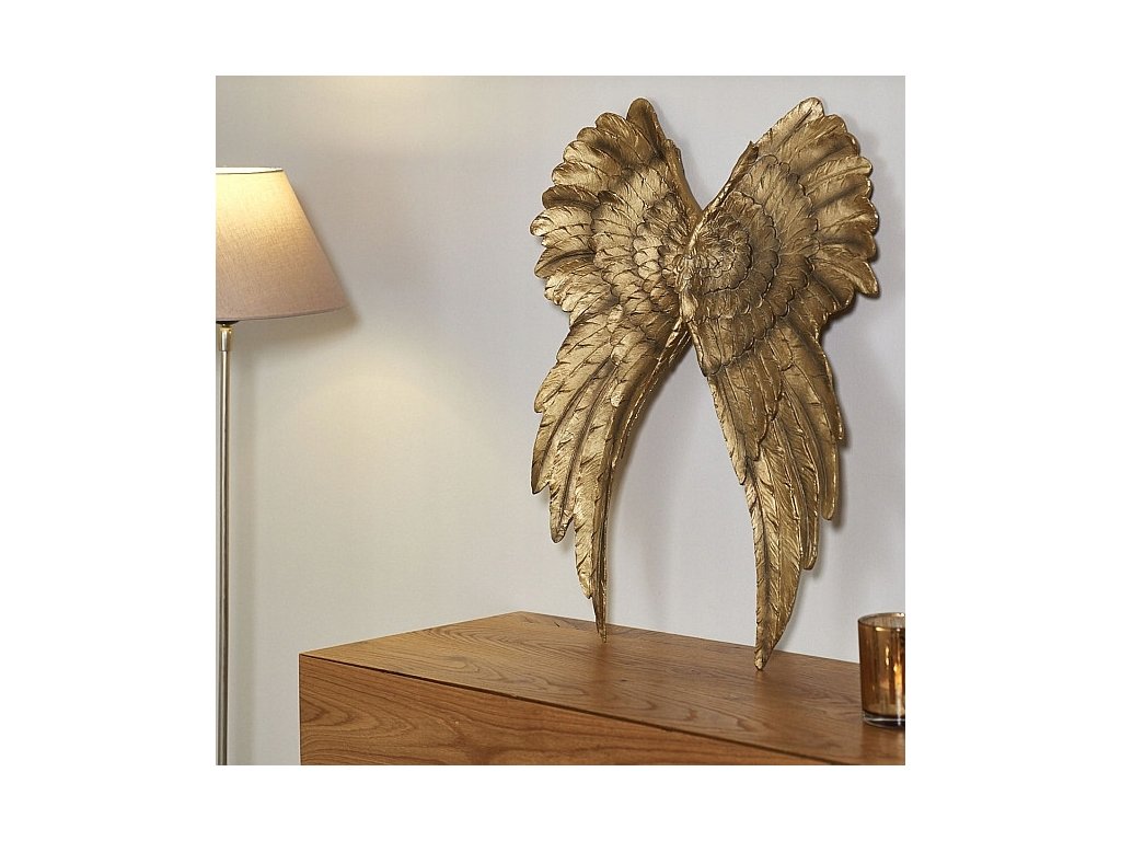 Vyzerajú tak majestátne... a budú zaručene ozdobou každého interiéru. Krásne zlaté anjelské krídla na ozdobenie vašej spálne alebo obývačky. Vyrobené z materiálu podobného keramike - polyresin (druh umelej živice). Celé je to pokryté zlatým lakom. Krídla jemne odrážajú svetlo a spracovanie s osobitným dôrazom na každý detail robí z tejto dekorácie umelecké dielo. Skvele sa budú hodiť ako doplnok ku Glamour štýlu, ktorému dominuje biela a zlatá.