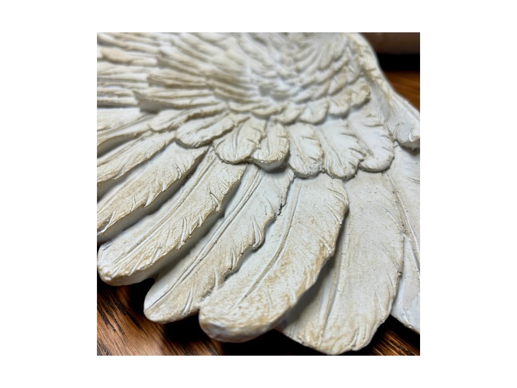 Dve anjelské krídla na stenu v krásnej patinovanej bielej farbe s dokonalým tieňovaním zaujmú každého na prvý pohľad.