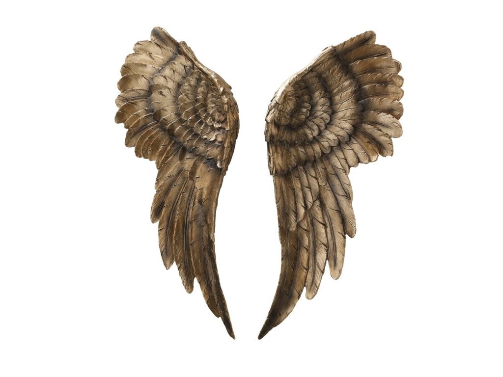 Dve anjelské krídla na stenu v krásnej zlatej farbe s dokonalým tieňovaním zaujmú každého na prvý pohľad.