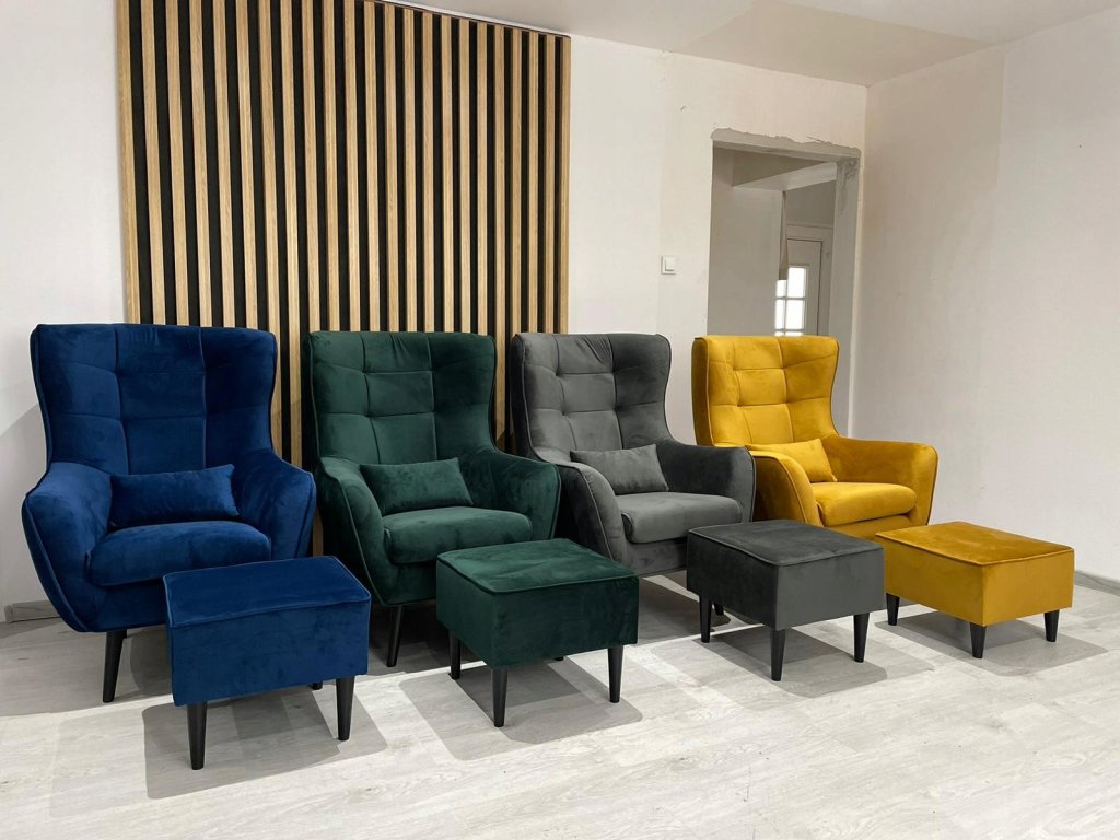 Technické prevedenie: Konštrukcia - nábytková doska + masív, výplň kresla - vlnitá pružina s čalúnenými pásmi a vysokoelastická pena T30/40 Výplň opierky nôh - T25/40 vysokoelastická pena. Nohy - Drevené čierne alebo bukové prírodné.