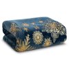 Elegantná vianočná deka JOY/3 150x200 cm, námornícka modrá so zimným vzorom so zlatými vločkami.