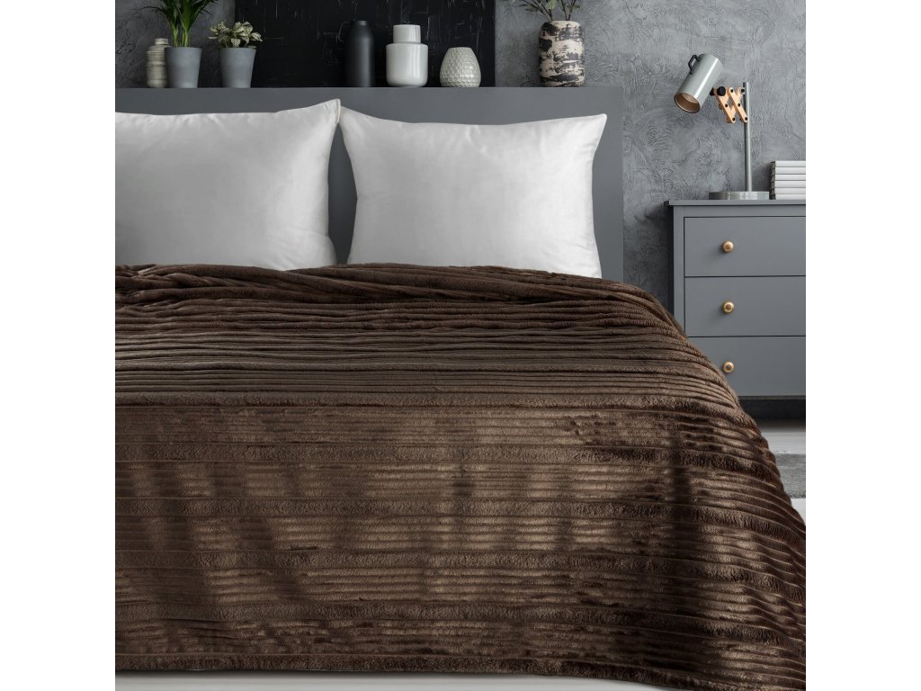 Deka NINA - elegancia a pohodlie. Vyrobená z mäkkého, zamatového materiálu s jemným leskom a veľmi peknou 3D pruhovanou textúrou. Zaujme svojím vzhľadom a príjemným pocitom na dotyk. Poskytuje teplo v chladných dňoch a zároveň slúži ako štýlová prikrývka na posteľ alebo pohovku, čím miestnosti dodáva nádych modernej elegancie. Je ideálna do spálne aj obývačky kde vytvára útulnú atmosféru. Dostupná v niekoľkých módnych farbách pre rôzne interiérové dizajny.