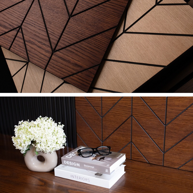 Dekoratívne obklady vyrobené z čiernej MDF dosky a prírodnej dubovej dýhy sú moderným prvkom v interiérovom dizajne. Tento prvok oceňujú profesionálni dizajnéri aj majitelia domov, ktorí túžia po modernej úprave a dekorácii stien bez náročnej rekonštrukcie. Výhodou je jednoduchá montáž a možnosť kombinovať jednotlivé obklady podľa vlastnej predstavy.