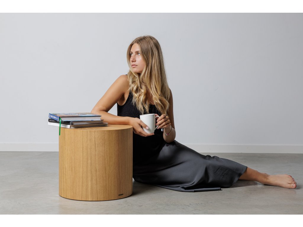 Materiál: Dubové drevo, ručne vrstvené a brúsené. Povrch uzavretý proti nasiakavosti, ľahká údržba. Utierajte vlhkou handričkou, bez agresívnych čističov. Škvrny čistite jemným mydlom. Odporúčame podtácky pod horúce alebo mokré predmety.