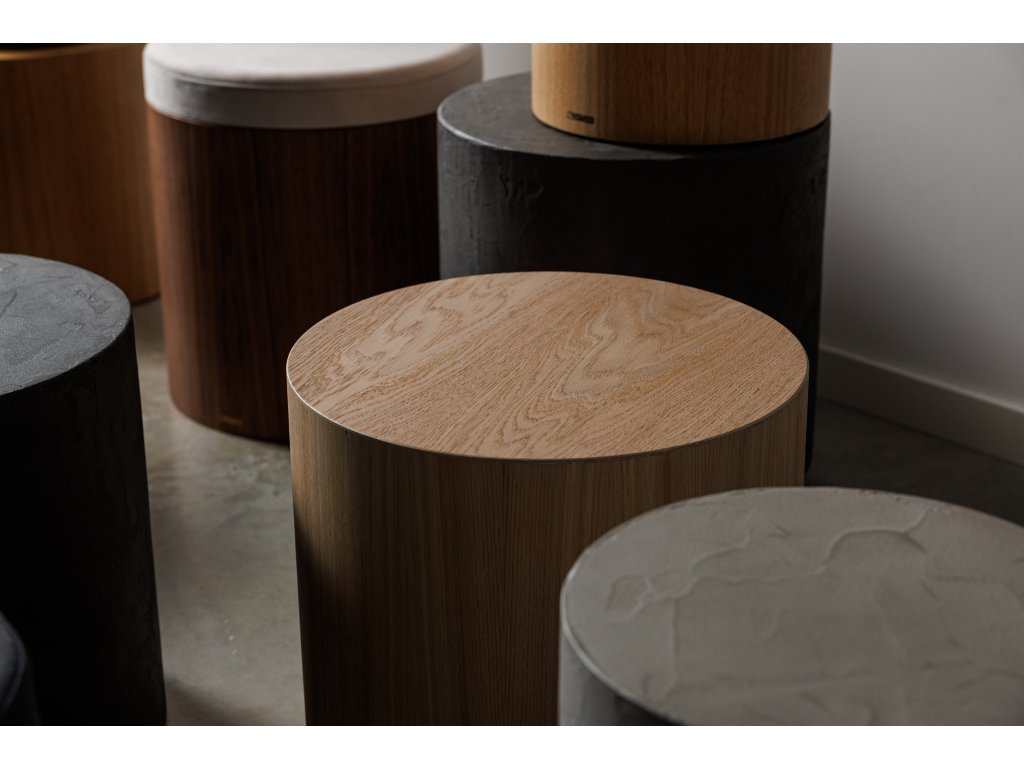 Dubový drevený stolík a taburet v minimalistickom dizajne. Precízne remeselné spracovanie, jednoduchá údržba a dlhá životnosť.