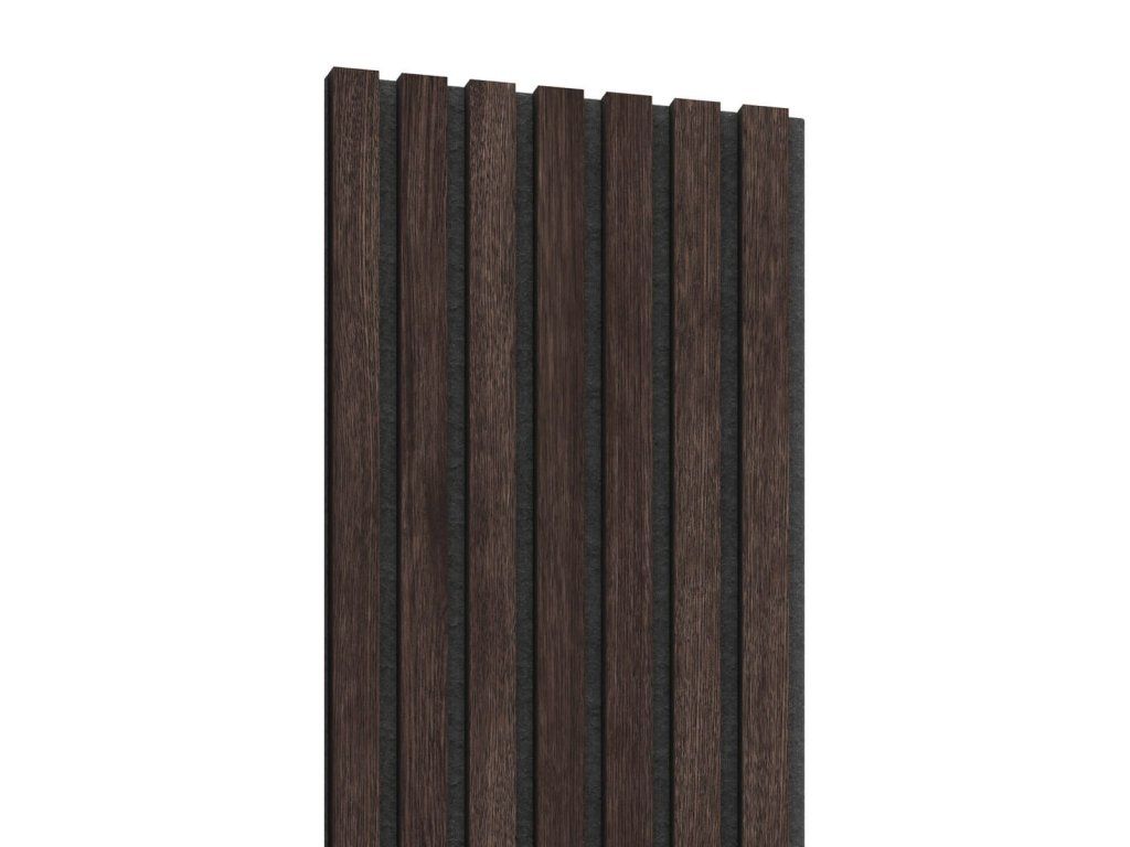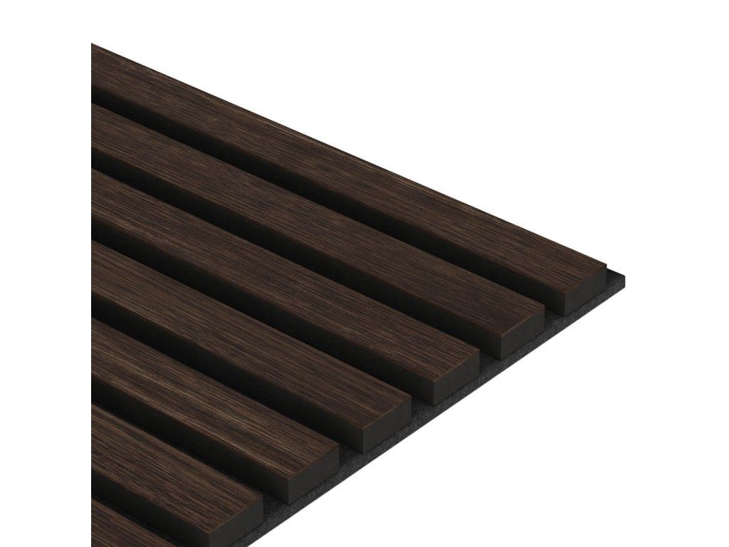 Dubový dýhovaný akustický panel v elegantnom odtieni gaštan, poskytuje skvelý vzhľad a účinne odhlučňuje miestnosť. Jednoduchá montáž lepením priamo na stenu alebo strop.