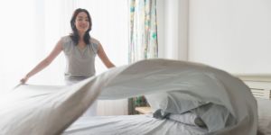 Pravidelne prezliekajte posteľné prádlo: Možno si to neuvedomujete, ale ľudské telo produkuje nepretržite nielen pot, ale aj maz. Tieto telesné výlučky posteľné prádlo z tela síce zotrie, ale z posteľného prádla môže časom vsiaknuť aj do matraca. Mastnota pôsobí na materiál, z ktorého je váš matrac vyrobený, deštruktívne a vytvára prostredie pre množenie baktérií. Ak prichádza posteľné prádlo do priameho kontaktu s pokožkou, malo by sa meniť aspoň raz za týždeň, a to najmä v letných mesiacoch, kedy sa vaše telo viac potí. Pot vytvára nielen nežiadúcu vlhkosť, ale aj prostredie pre tvorbu a množenie baktérií.