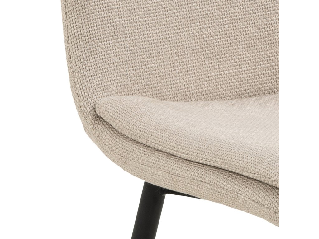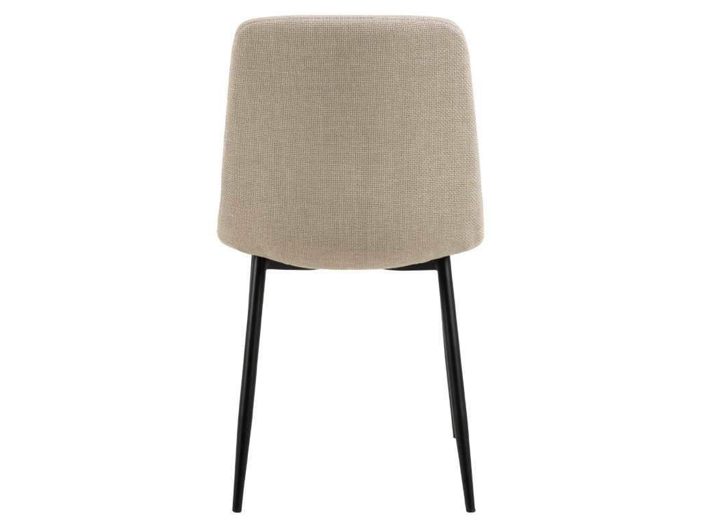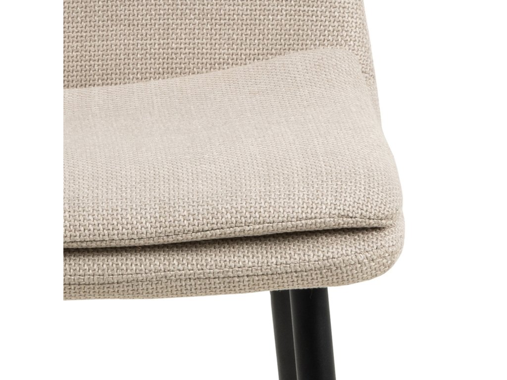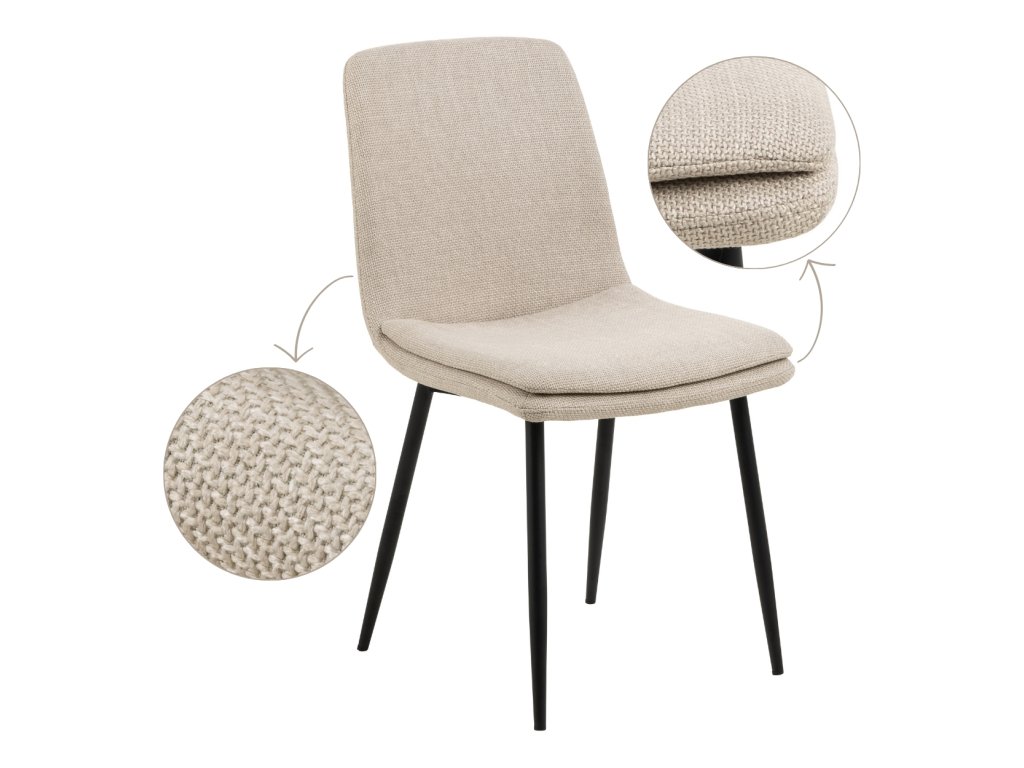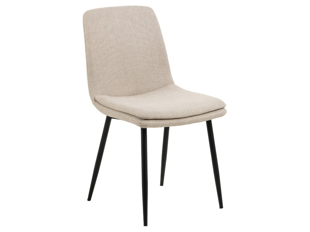 Moderná jedálenská stolička v jemnom béžovom odtieni zaujme kombináciou elegancie a pohodlia. Jej ergonomický tvar poskytuje pohodlnú oporu pri sedení. Dodatočná prešívaná vrstva sedadla zvyšuje pohodlie, vďaka čomu je ideálnou voľbou pre každodenné stolovanie aj dlhšie stretnutia či rokovania pri stole. Čalúnenie príjemnou béžovou látkou dodáva stoličke Becca jemnosť a eleganciu. Čierne kovové nohy zabezpečujú pevnosť, odolnosť a stabilitu. Stolička je vhodná do kuchyne, obývačky aj do komerčných priestorov reštaurácii a hotelov. Rozmery stoličky: Výška 85,5 cm. Šírka 46 cm. Výška sedadla 48 cm. Hĺbka sedadla 43 cm. Celková hĺbka stoličky je 55 cm. Nosnosť 110 kg.
