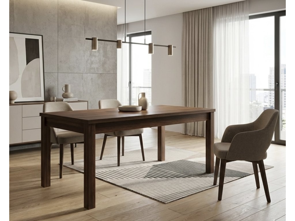 Klasický jedálenský stôl svojou konštrukciou je vhodný pre domáce použitie, ale aj do komerčnej prevádzky. Nohy stola sú vyrobené z masívneho dreva s rozmerom 75x5x5 cm. Vrchná stolová doska je z laminovanej drevotriesky v hrúbke 18mm. Hrany stolovej dosky sú olepené 2 mm ABS hranou. Stôl v odtieni Dub hnedý s rozmerom 180x80 cm, spolu s drevenými stoličkami alebo čalúnenými stoličkami sa hodí do klasickej i modernej kuchyne či jedálne. Rozmer stola je 180x80 cm. Výška stola 77 cm. Výška od zeme po priečku stola je 65 cm. Rozmer medzi stolovými nohami na kratšej strane je 69 cm a na dlhšej strane 170 cm.
