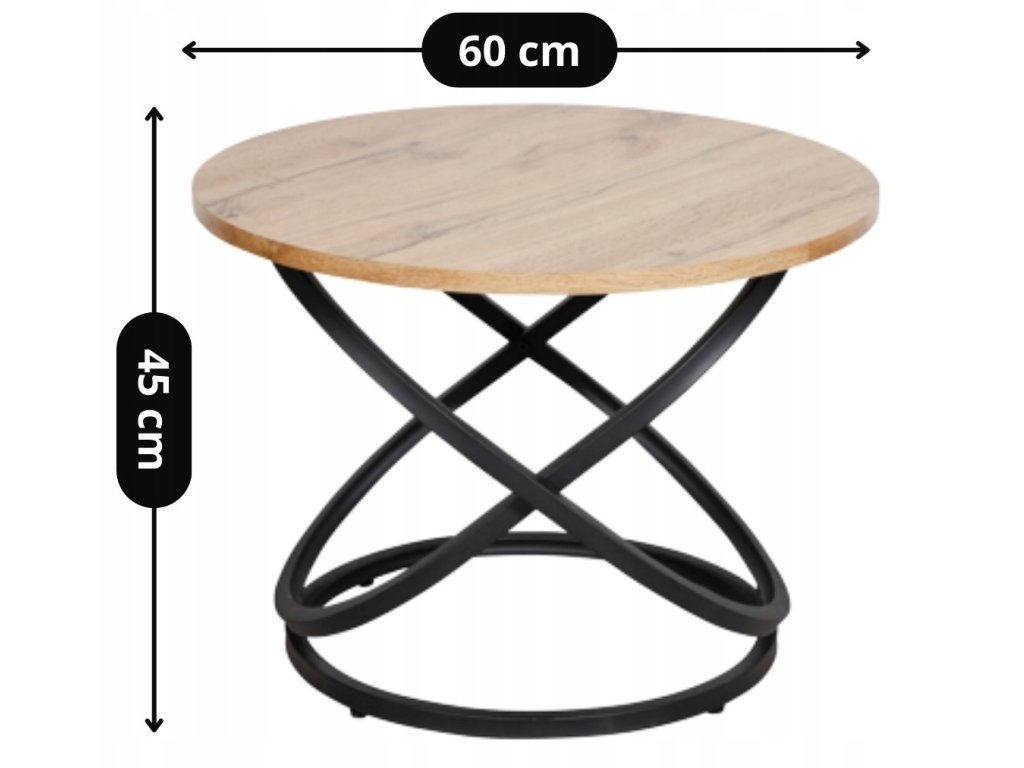 Okrúhly dizajnový konferenčný stolík EOS 60 cm, dubový/čierny, kovový rám, loftový štýl.