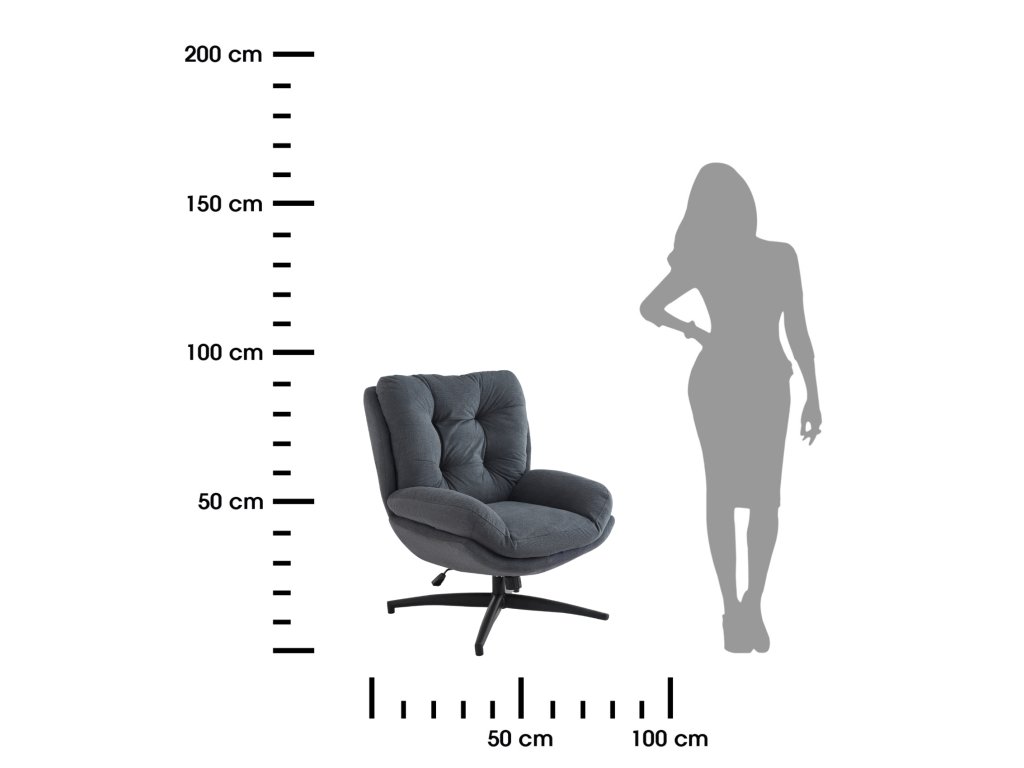 Rozmery: Výška 97 cm. Šírka 76 cm. Hĺbka 86 cm. Výška sedenia 47 cm.