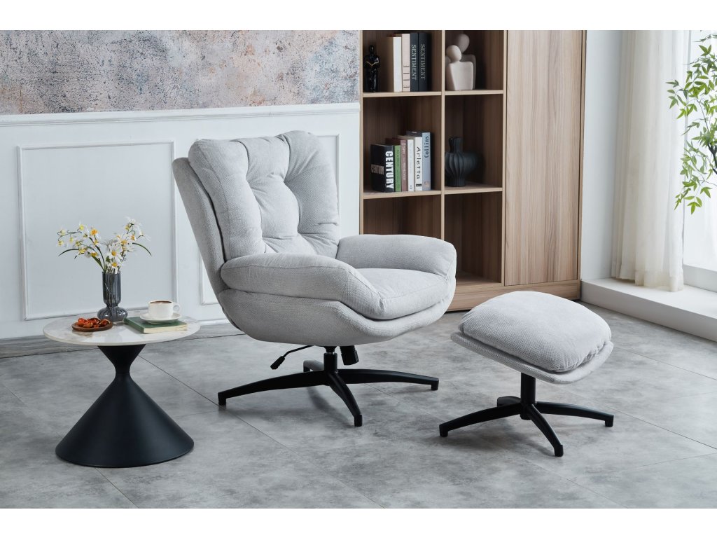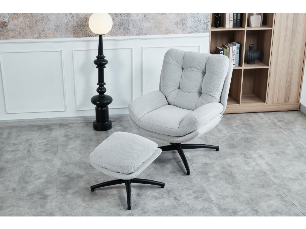 Kreslo s taburetkou Royal svetlá šedá