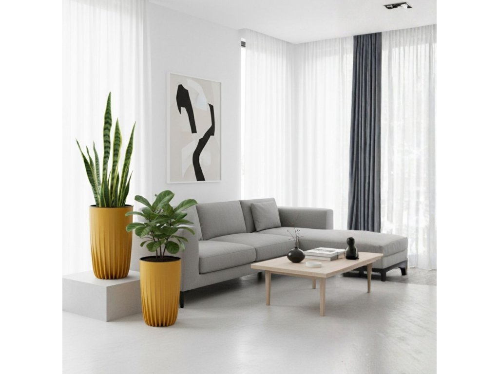 Vďaka dizajnovému a modernému tvaru je tento kvetináč správnou voľbou pre tých, ktorí ocenia originálne detaily v interiérovom dizajne. Štíhly a valcovitý tvar kvetináča Stripped je doplnený dekoratívnymi prvkami. Kvetináč je vhodný do interiéru aj exteriéru – na terasu, balkón alebo do záhrady. Produkt sa skladá z kvetináča a praktickej vložky hlbokej 25 cm, ktorá poskytuje dostatočný priestor pre koreňový systém a uľahčuje starostlivosť o rastliny tým, že eliminuje potrebu vypĺňať celý kvetináč zeminou. Kvetináč Stripped je dostupný v dvoch veľkostiach: 42 cm a 51 cm. Táto ponuka platí len pre kvetináč zobrazený na prvej fotografii. Kvetináče a dekorácie zobrazené na fotografiách nie sú súčasťou predaja. Rozmery kvetináča: Výška 42 cm a priemer 25 cm. Vložka do kvetináča má hĺbku 25 cm.