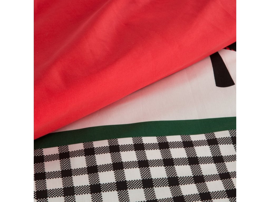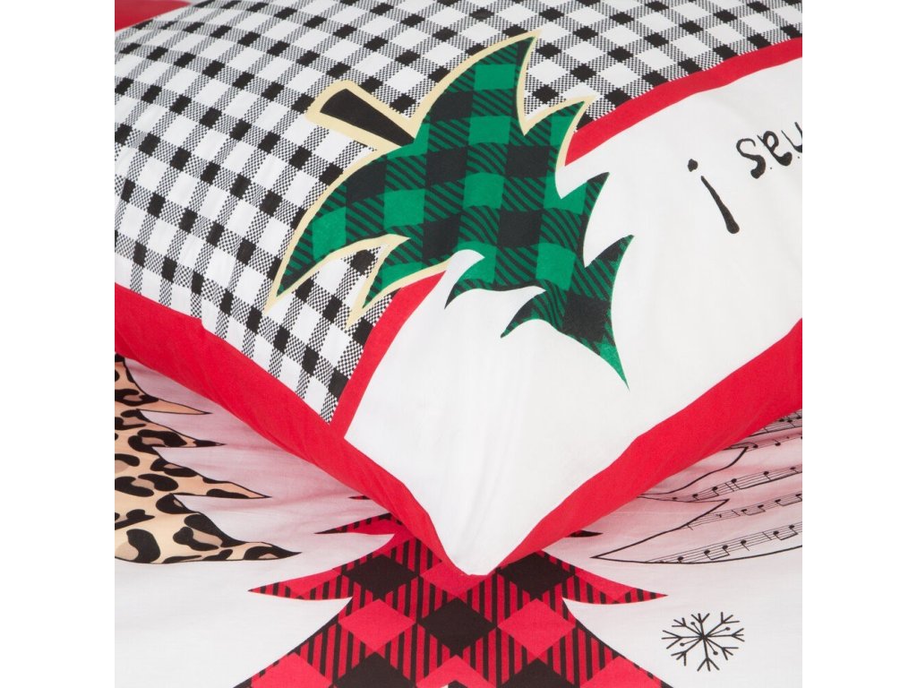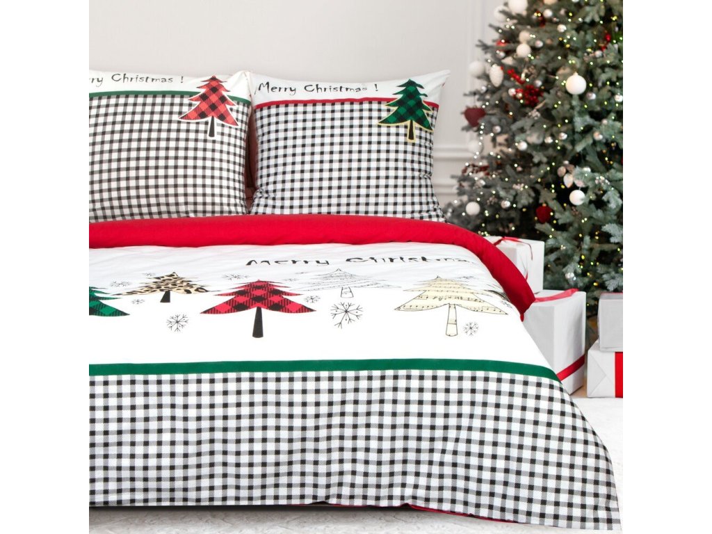 Bavlnené vianočné obliečky GERDA s motívom farebných vianočných stromčekov, decentných snehových vločiek a nápisom "Merry Christmas" je dokonalou voľbou na zimné obdobie. Klasický čierno-biely kockovaný vzor v kombinácii s elegantnými vianočnými stromčekmi v odtieňoch červenej, zelenej a béžovej dodáva interiéru radostnú, sviatočnú atmosféru pri zachovaní moderného štýlu. Obliečky vyrobené z mäkkej a priedušnej bavlny zaisťujú pohodlný a príjemný spánok, sú odolné a nenáročné na údržbu. Ide o perfektný doplnok do spálne, ktorý vám pomôže navodiť vianočnú atmosféru bez ohľadu na zariadenie interiéru. Vďaka kombinácii klasického plédu a vianočných akcentov sa posteľná bielizeň perfektne hodí do minimalistických aj tradičnejších interiérov. Postarajte sa o sviatočnú atmosféru vo svojej spálni a užite si pohodlie každý večer.