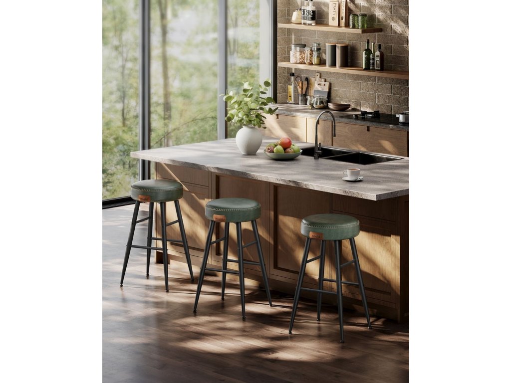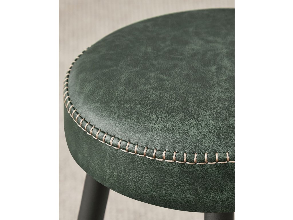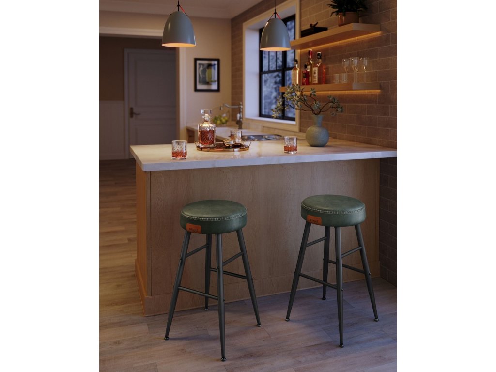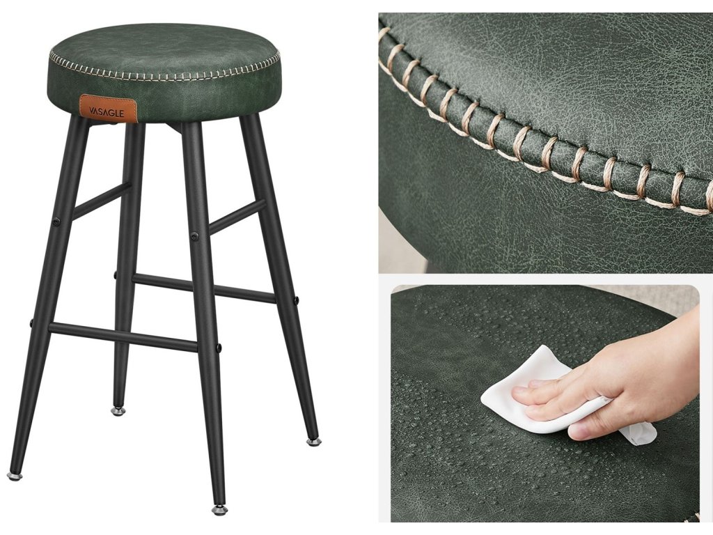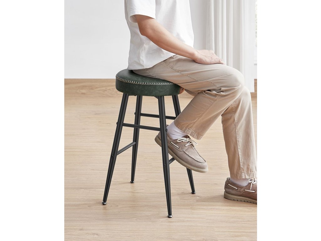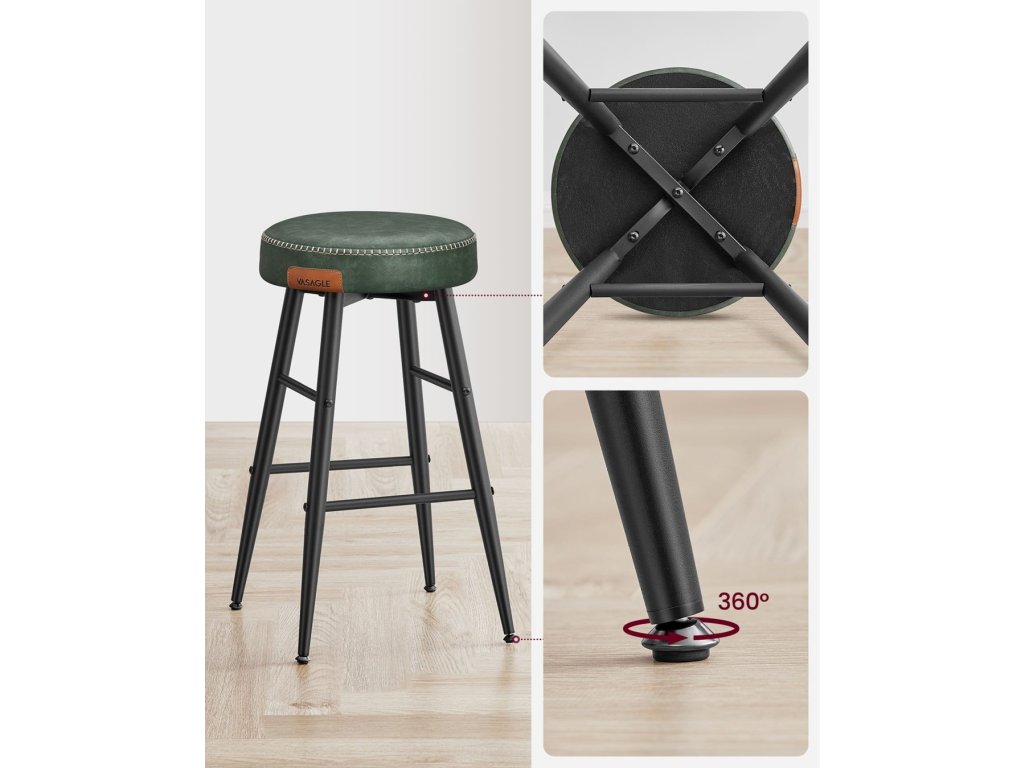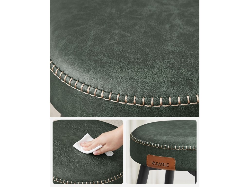 Sada 2 barových stoličiek a ich skosené oceľové nohy zaručujú mimoriadnu stabilitu a odolnosť a vďaka nastaviteľným klzákom prispôsobíte stoličku miernym nerovnostiam na podlahe, čo zaistí stabilitu pri každodennom používaní. Opierky nôh uspokoja ľudí rôznej výšky a ponúkajú kombináciu pohodlia a všestrannosti. Samotné sedadlo je vyrobené z vysoko odolnej peny a potiahnuté vodeodolnou zelenou syntetickou kožou, vďaka čomu sa ľahko čistí. Dodatočné prešívanie je doplnkovým prvkom, ktorý posilňuje ich štruktúru a dodáva celku jedinečný, moderný a elegantný štýl. Skvele sa hodia do kuchyne, jedálne či obývačky, vytvárajú útulné miesto na oddych a trávenie času s blízkymi a pevná konštrukcia a kvalitné materiály vydržia dlhé roky.