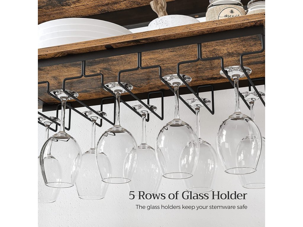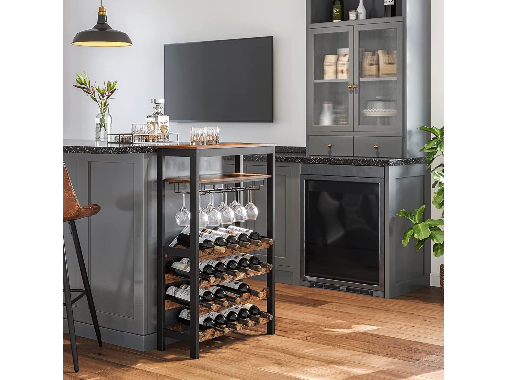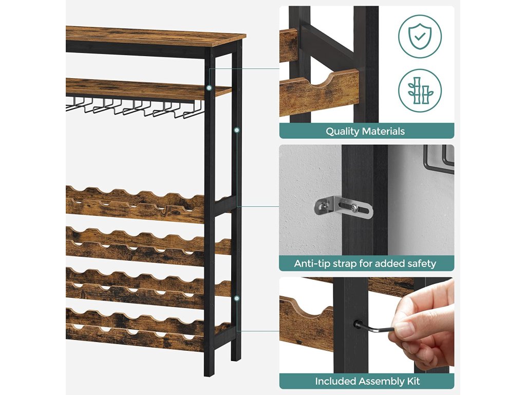 Elegantný a praktický stojan na víno a poháre. Priestor na 24 fliaš vína s držiakmi na poháre a policou.
