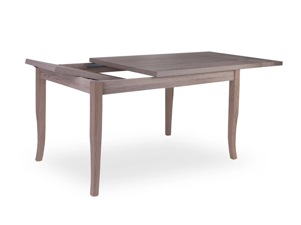 Drevený stôl do jedální a kuchýň. Je vyrobený z kvalitných materiálov. Nohy stola sú hranaté. Vyrába sa v rozťahovacom a pevnom prevedení. Pri rozťahovacom stole je prídavná doska uložená v stole.