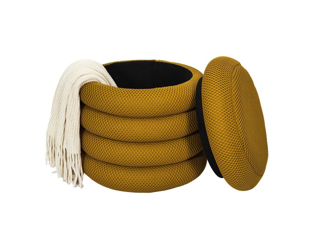 Taburetka Kame s úložným priestorom – moderný 3D materiál, módny dizajn, úložný priestor a pohodlie v jednom kuse nábytku.
