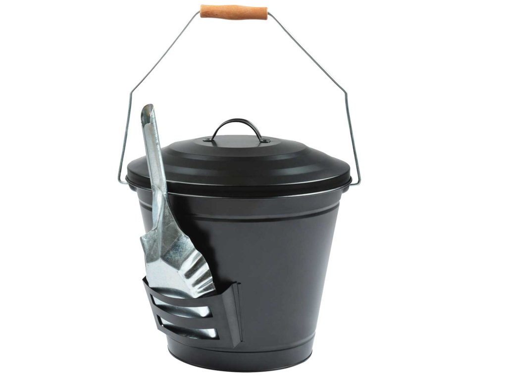 Vedro na popol komplet s lopatou vyrobené z ocele. Rozmery 35 x 33 x 34 cm.