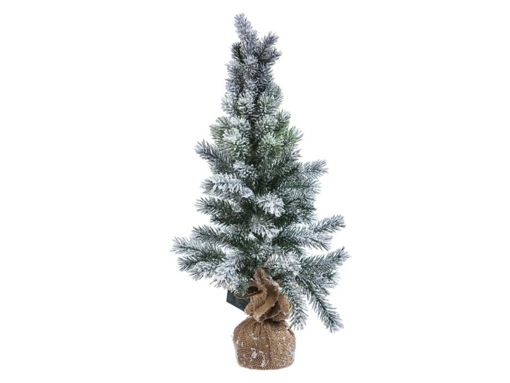 Zasnežený vianočný stromček s jutovým obalom – 60 cm.