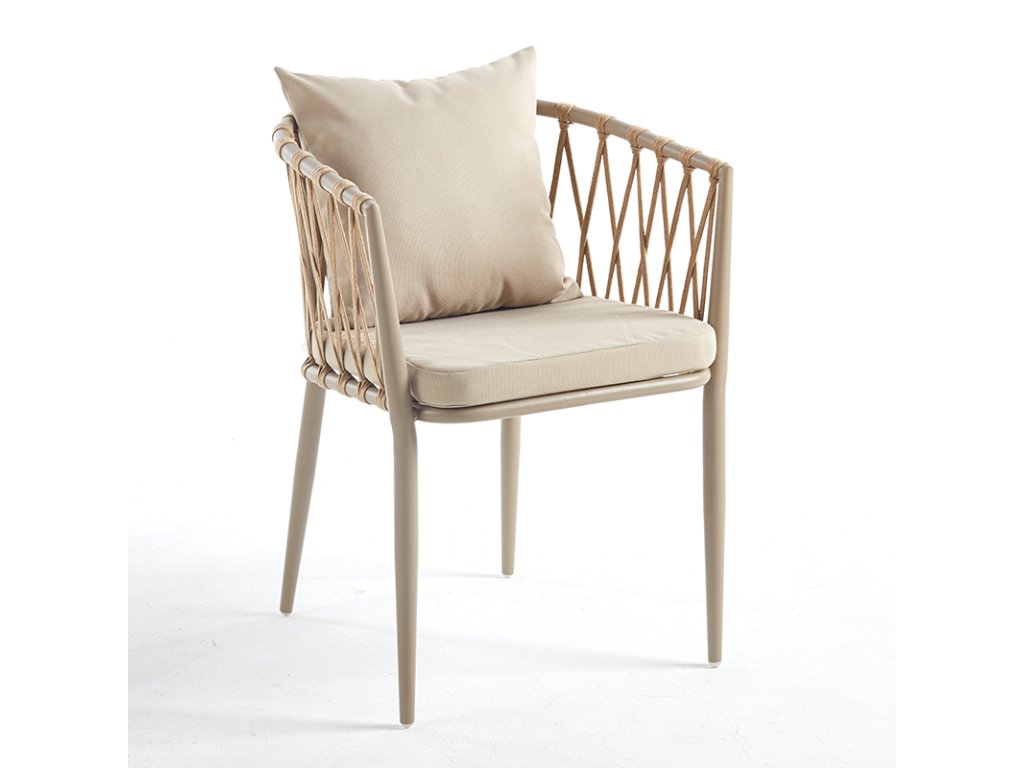 Záhradná stolička Madeira je perfektným doplnkom na vašu terasu alebo záhradu. Jeho neutrálna béžová farba ladí s okolím a dodáva kreslu elegantný a príjemný vzhľad. Dokonale stabilné nohy optimálnej výšky a klasické farby mu dodávajú charakter a eleganciu. Prepletané operadlo a pohodlné vankúše zaisťujú maximálne pohodlie. Záhradné kreslo Madeira poskytuje pohodlie pre relax na vašej terase a záhrade. Skvele zapadne do minimalistických a loftových dizajnov, no dobre poslúži aj v priestoroch zariadených v módnom vintage a škandinávskom štýle. Madeira znamená komfort, pohodlie a štýl. Stoličky sú stohovateľné, čo poskytuje výhodu pri uskladnení. ROZMERY: Výška 77 cm, Šírka 57 cm, Hĺbka 59 cm, Výška sedadla 48 cm, Hĺbka sedadla 48 cm.